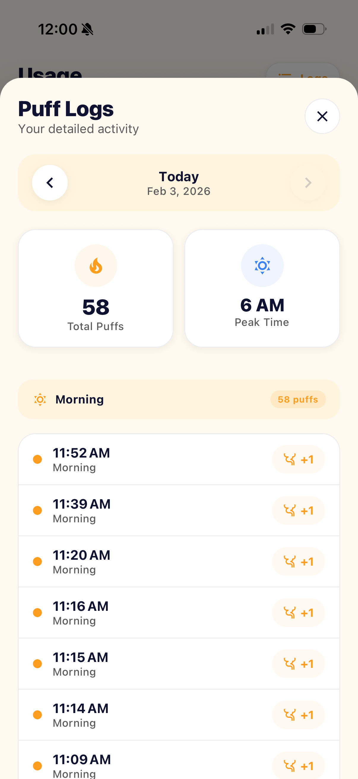 Easily track your puff intake, even when the app is closed. Seamless monitoring anytime, anywhere.