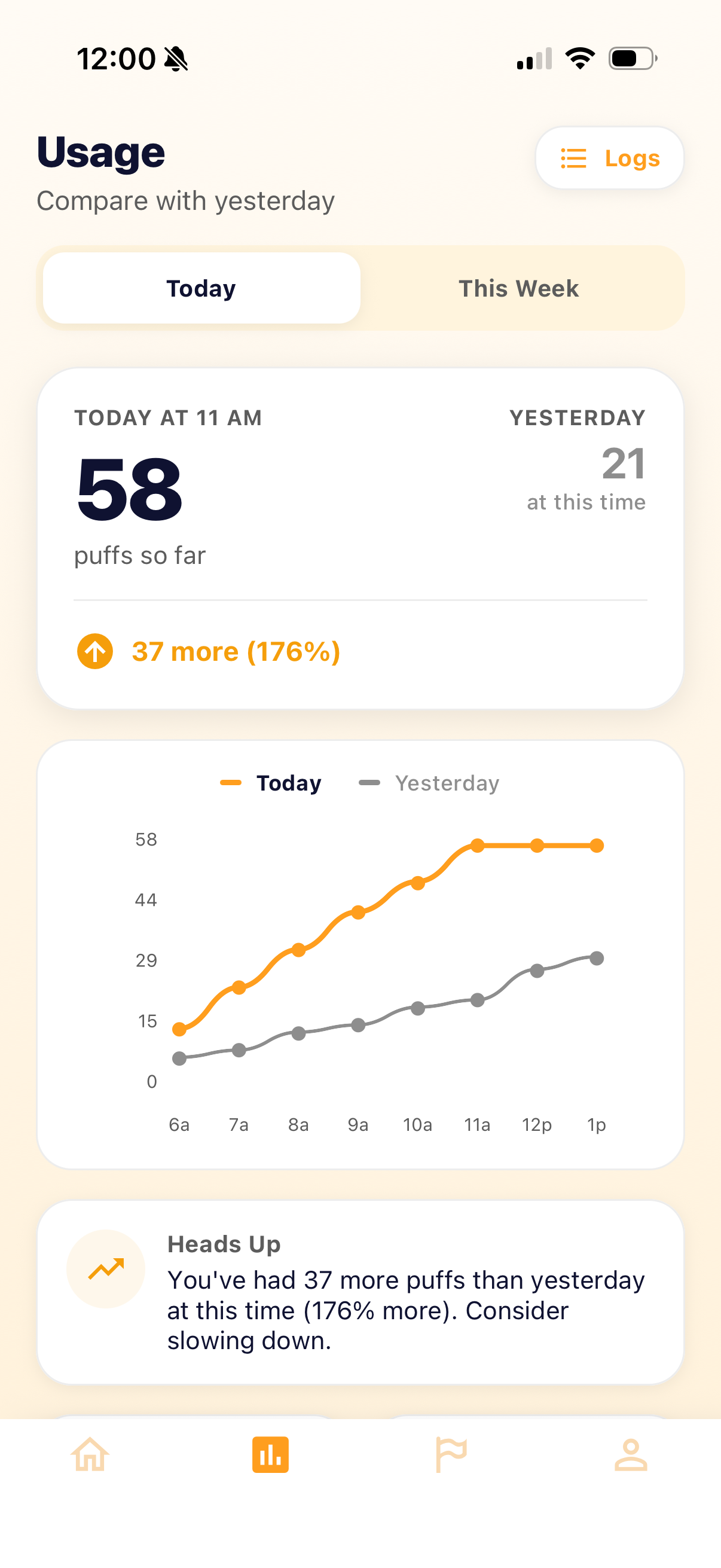 Get instant visual feedback on your daily puff intake. Sum Puff provides clear and easy-to-understand graphics.
